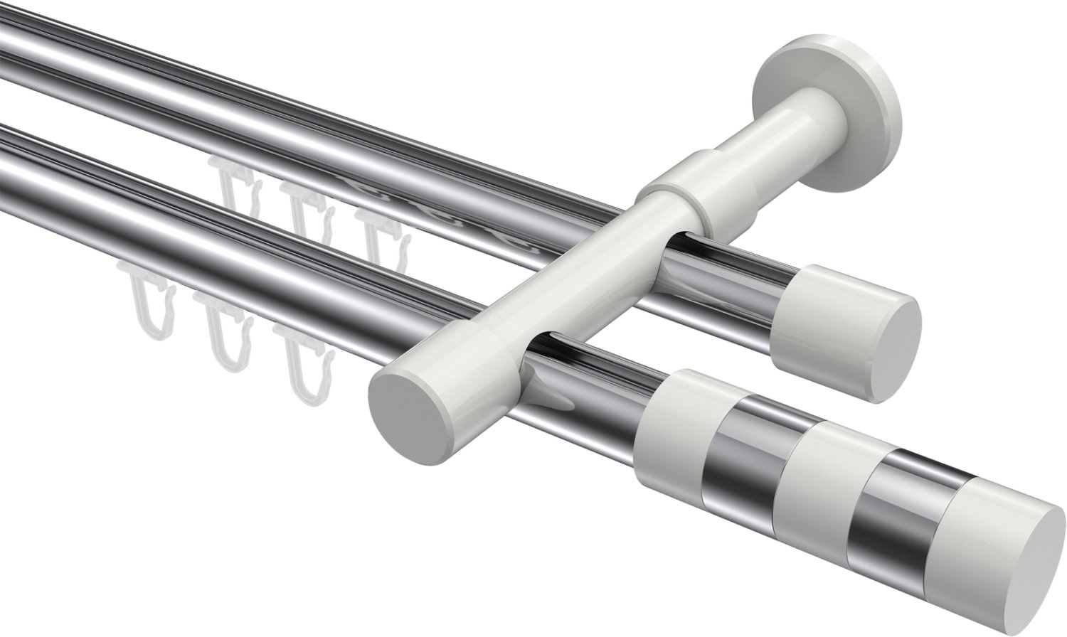 Informationen zu Innenlauf Gardinenstange Aluminium / Metall 20 mm Ø 2-läufig PRESTIGE - Mavell Chrom / Weiß: