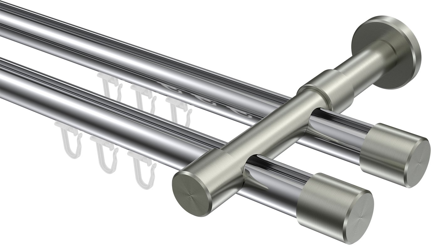 Gardinenstangen mit Innenlauf aus Aluminium / Metall in 20 mm Ø, 2-läufig, Modell PRESTIGE - Santo Chrom / Edelstahl-Optik