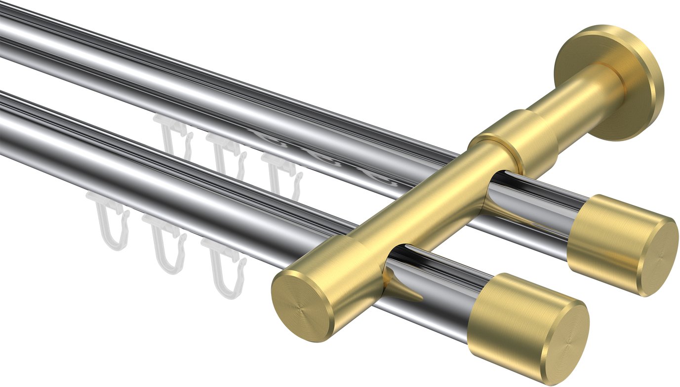 Gardinenstangen mit Innenlauf aus Aluminium / Metall in 20 mm Ø, 2-läufig, Modell PRESTIGE - Santo Chrom / Messing-Optik
