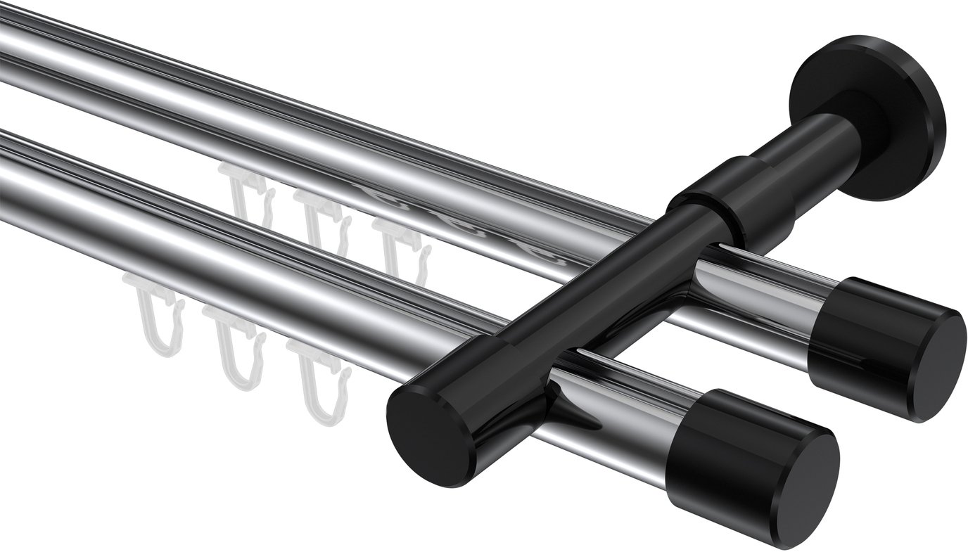Gardinenstangen mit Innenlauf aus Aluminium / Metall in 20 mm Ø, 2-läufig, Modell PRESTIGE - Santo Chrom / Schwarz