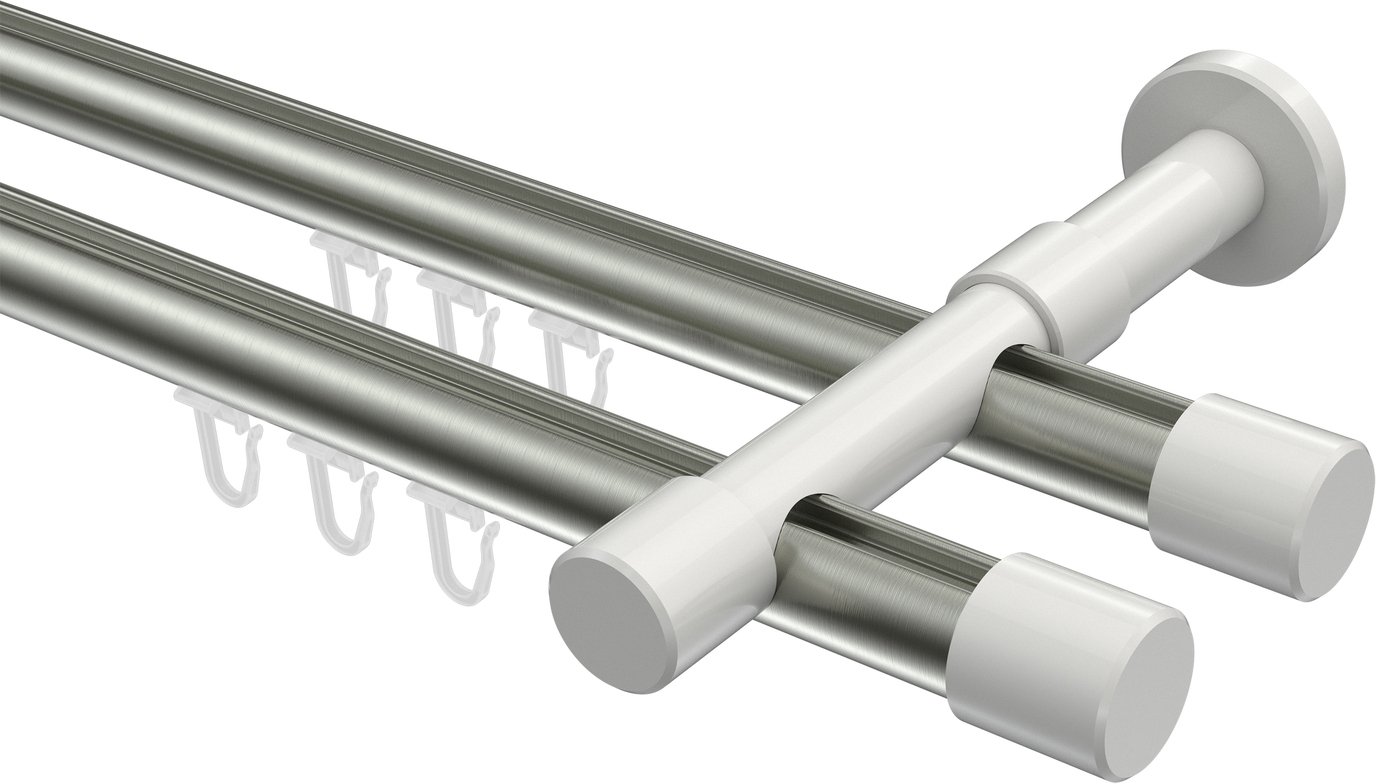 Informationen zu Innenlauf Gardinenstange Aluminium / Metall 20 mm Ø 2-läufig PRESTIGE - Santo Edelstahl-Optik / Weiß: