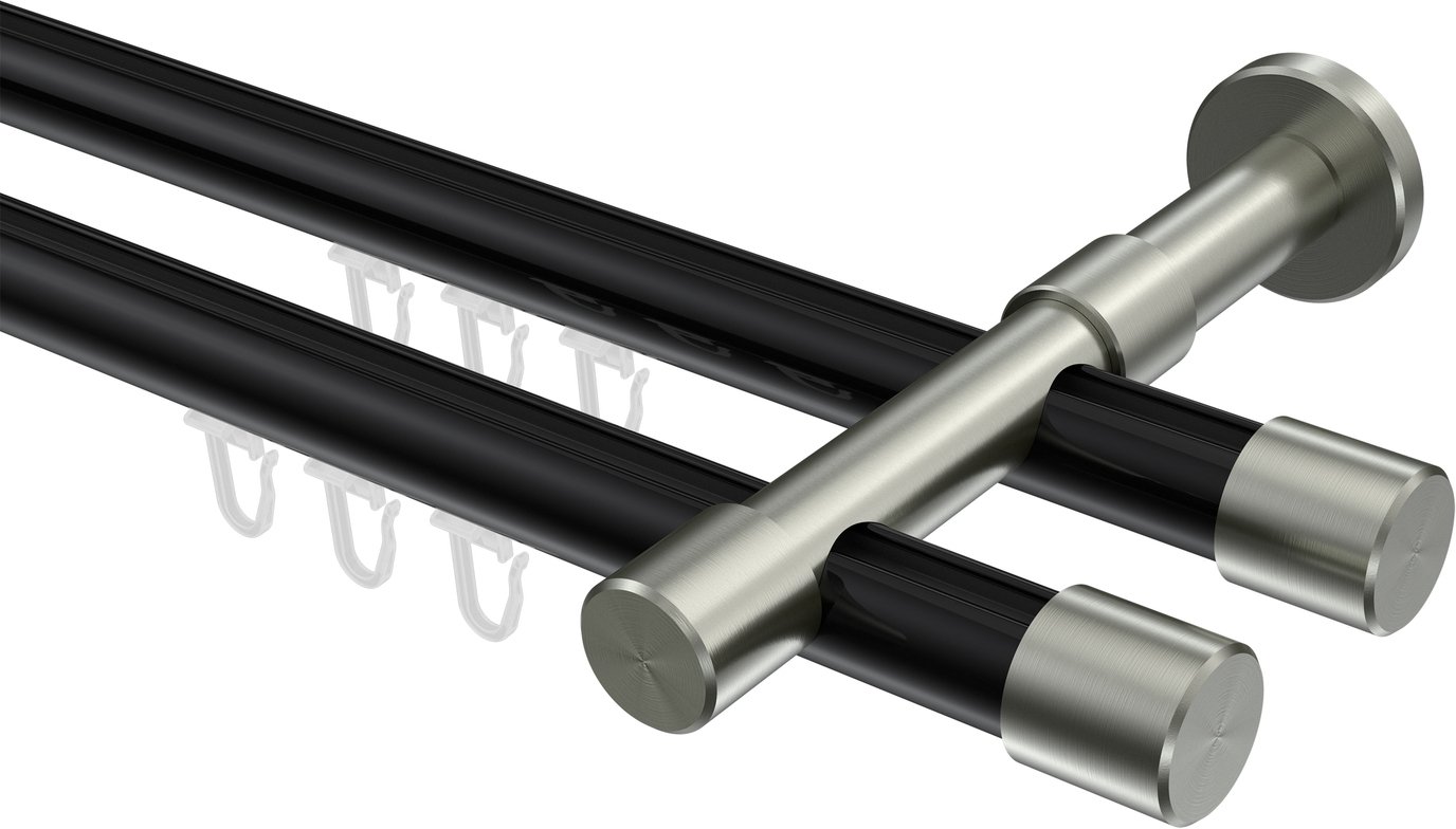 Informationen zu Innenlauf Gardinenstange Aluminium / Metall 20 mm Ø 2-läufig PRESTIGE - Santo Schwarz / Edelstahl-Optik:
