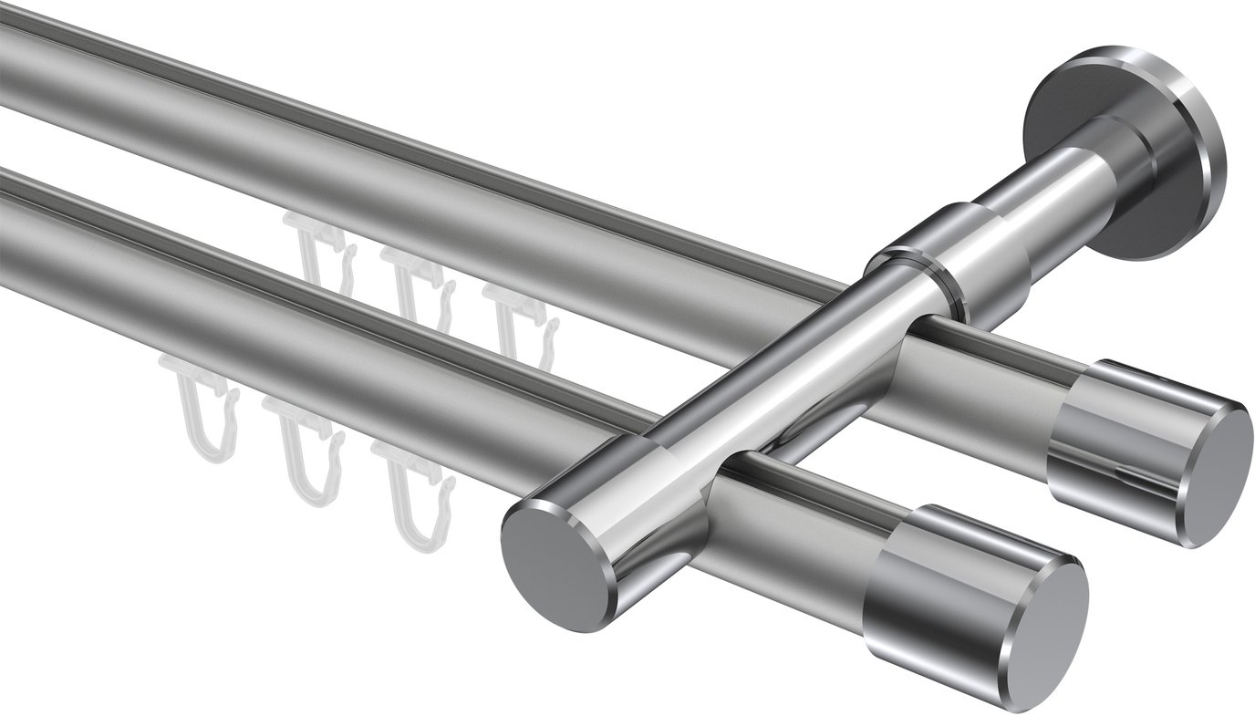 Gardinenstangen mit Innenlauf aus Aluminium / Metall in 20 mm Ø, 2-läufig, Modell PRESTIGE - Santo Silbergrau / Chrom