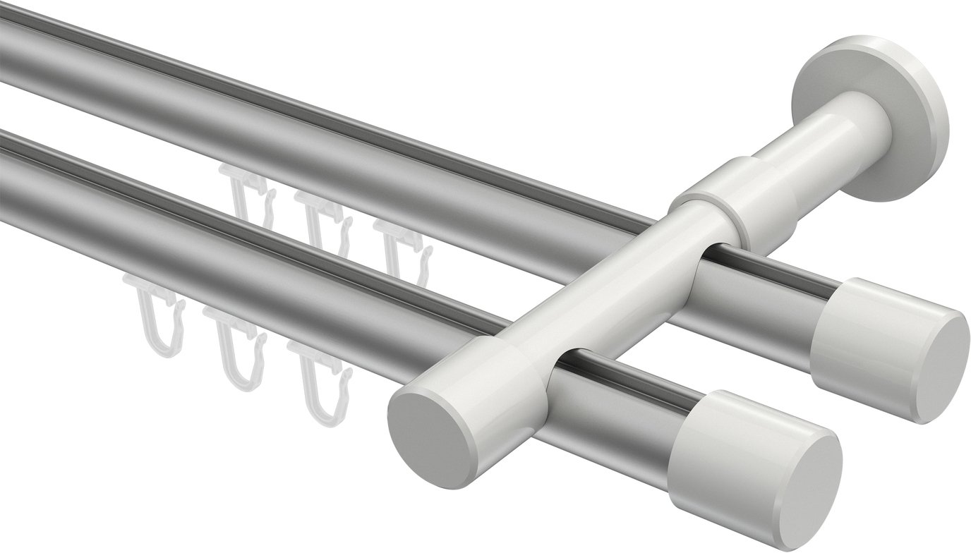 Informationen zu Innenlauf Gardinenstange Aluminium / Metall 20 mm Ø 2-läufig PRESTIGE - Santo Silbergrau / Weiß: