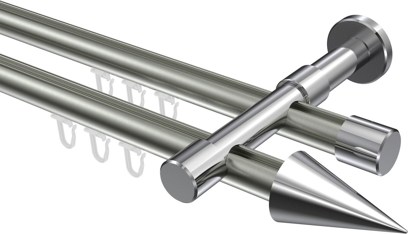Informationen zu Innenlauf Gardinenstange Aluminium / Metall 20 mm Ø 2-läufig PRESTIGE - Savio Edelstahl-Optik / Chrom: