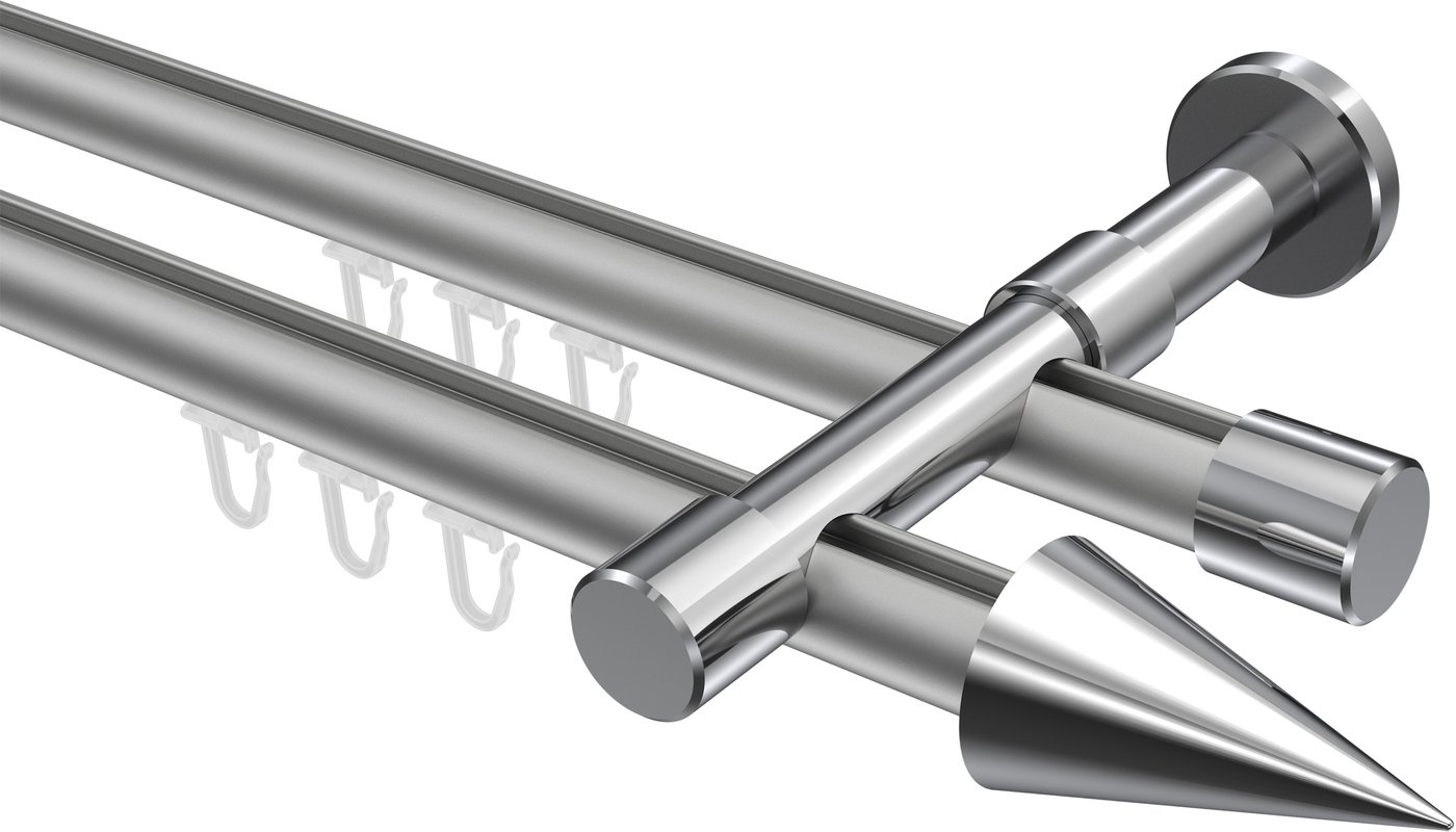 Informationen zu Innenlauf Gardinenstange Aluminium / Metall 20 mm Ø 2-läufig PRESTIGE - Savio Silbergrau / Chrom: