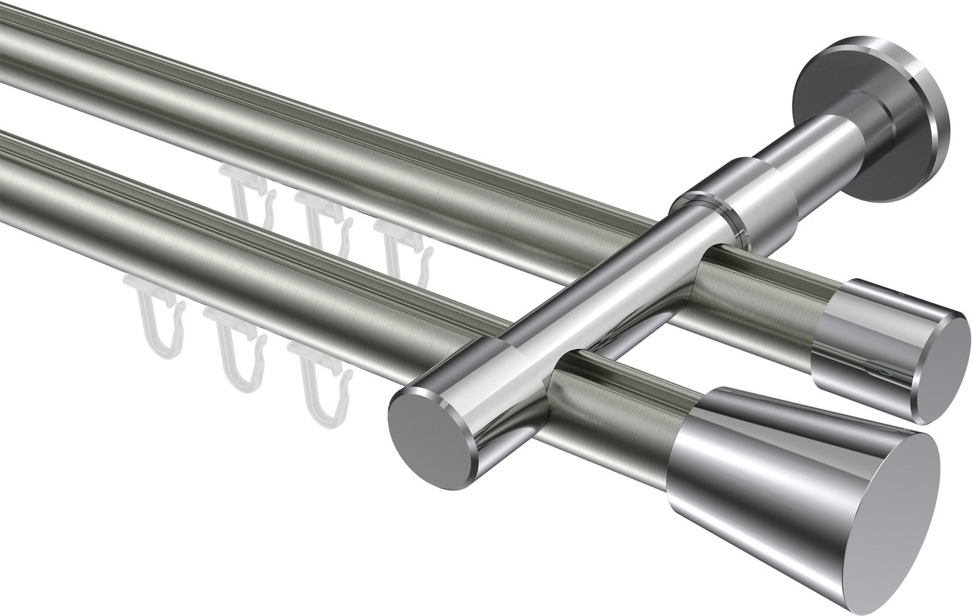 Gardinenstangen mit Innenlauf aus Aluminium / Metall in 20 mm Ø, 2-läufig, Modell PRESTIGE - Sitra Edelstahl-Optik / Chrom