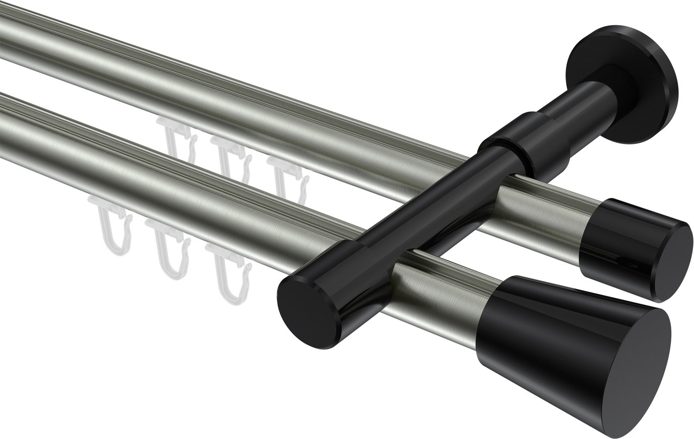 Gardinenstangen mit Innenlauf aus Aluminium / Metall in 20 mm Ø, 2-läufig, Modell PRESTIGE - Sitra Edelstahl-Optik / Schwarz