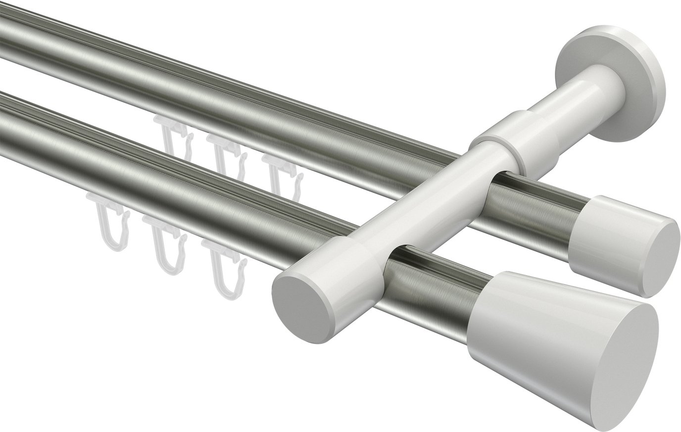 Gardinenstangen mit Innenlauf aus Aluminium / Metall in 20 mm Ø, 2-läufig, Modell PRESTIGE - Sitra Edelstahl-Optik / Weiß