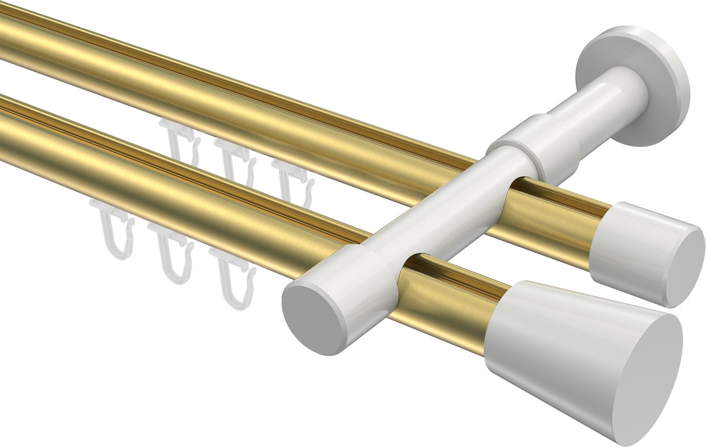 Informationen zu Innenlauf Gardinenstange Aluminium / Metall 20 mm Ø 2-läufig PRESTIGE - Sitra Messing-Optik / Weiß: