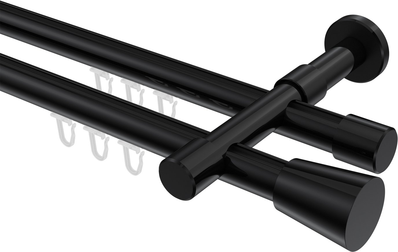 Gardinenstangen mit Innenlauf aus Aluminium / Metall in 20 mm Ø, 2-läufig, Modell PRESTIGE - Sitra Schwarz