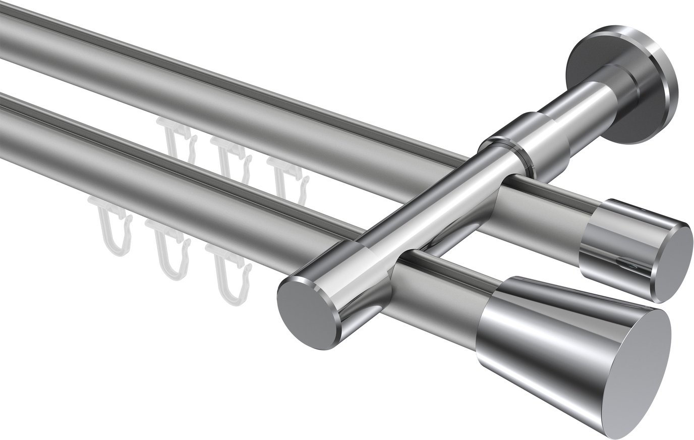 Gardinenstangen mit Innenlauf aus Aluminium / Metall in 20 mm Ø, 2-läufig, Modell PRESTIGE - Sitra Silbergrau / Chrom