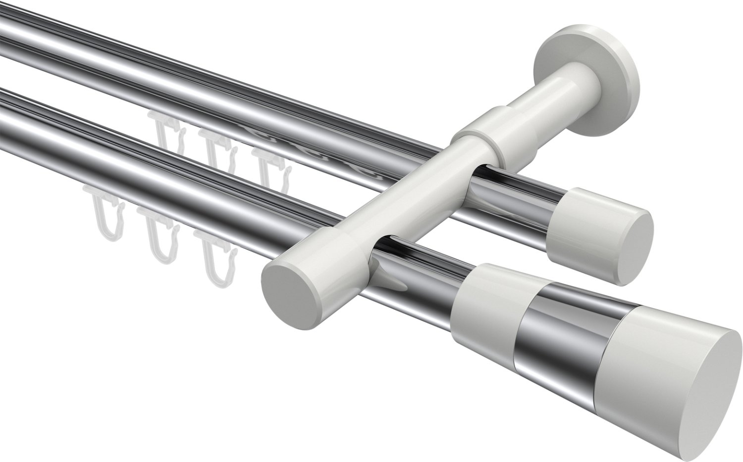 Gardinenstangen mit Innenlauf aus Aluminium / Metall in 20 mm Ø, 2-läufig, Modell PRESTIGE - Tanara Chrom / Weiß