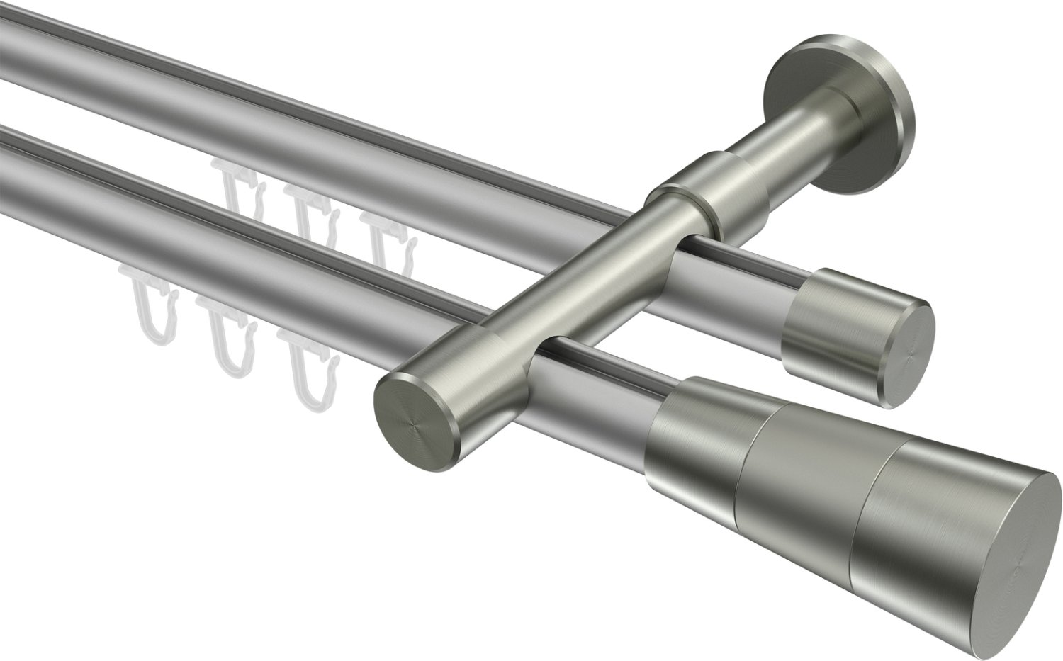 Informationen zu Innenlauf Gardinenstange Aluminium / Metall 20 mm Ø 2-läufig PRESTIGE - Tanara Silbergrau / Edelstahl-Optik: