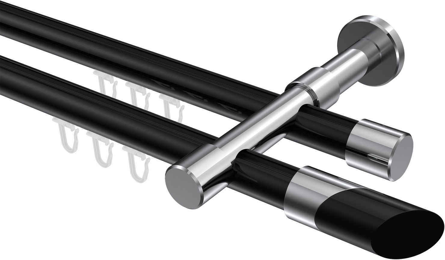 Gardinenstangen mit Innenlauf aus Aluminium / Metall in 20 mm Ø, 2-läufig, Modell PRESTIGE - Verano Schwarz / Chrom