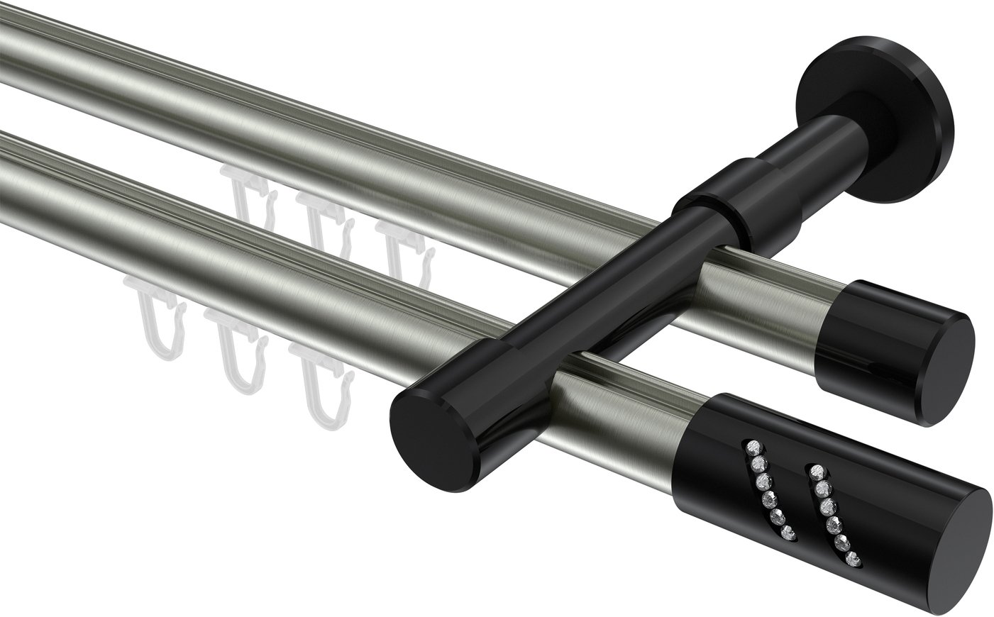 Gardinenstangen mit Innenlauf aus Aluminium / Metall in 20 mm Ø, 2-läufig, Modell PRESTIGE - Zoena Edelstahl-Optik / Schwarz