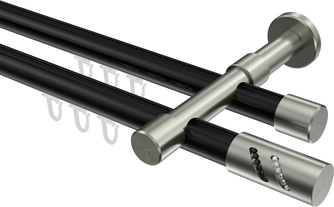 Gardinenstangen mit Innenlauf aus Aluminium / Metall in 20 mm Ø, 2-läufig, Modell PRESTIGE - Zoena Schwarz / Edelstahl-Optik