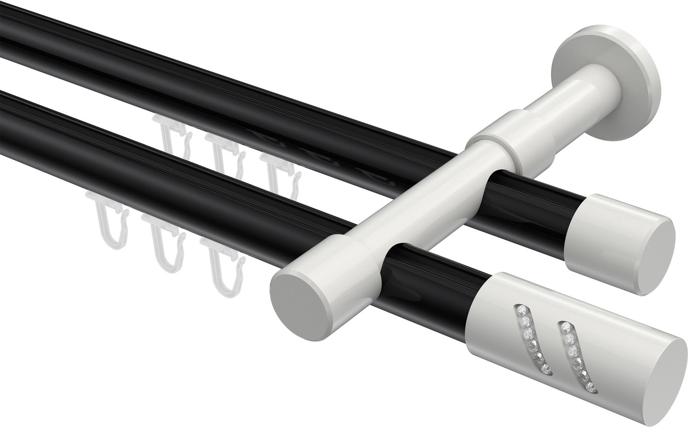 Informationen zu Innenlauf Gardinenstange Aluminium / Metall 20 mm Ø 2-läufig PRESTIGE - Zoena Schwarz / Weiß: