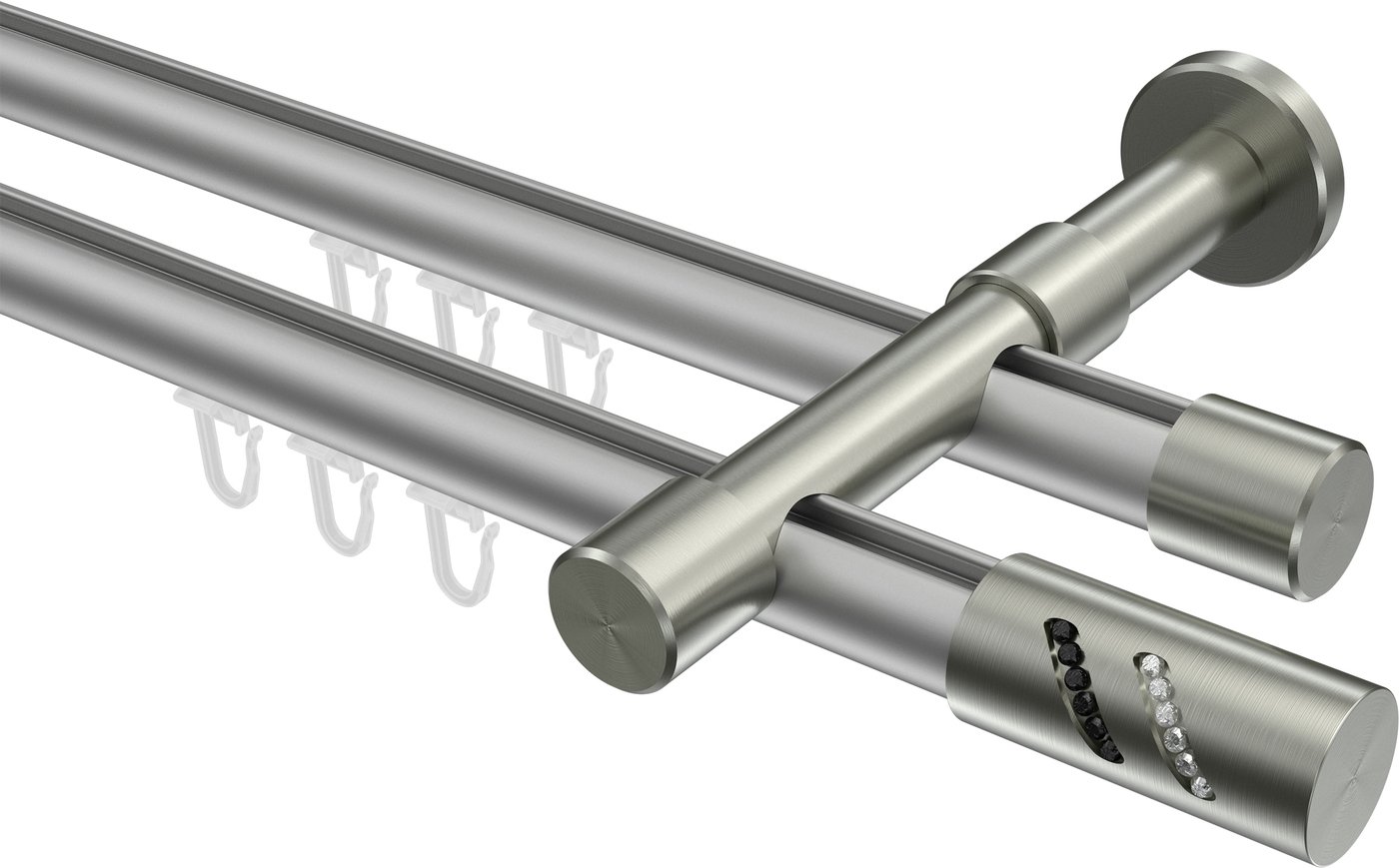 Informationen zu Innenlauf Gardinenstange Aluminium / Metall 20 mm Ø 2-läufig PRESTIGE - Zoena Silbergrau / Edelstahl-Optik: