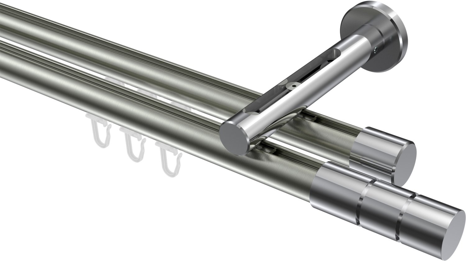 Gardinenstangen mit Innenlauf aus Aluminium / Metall in 20 mm Ø, 2-läufig, Modell SITENO - Elanto Edelstahl-Optik / Chrom