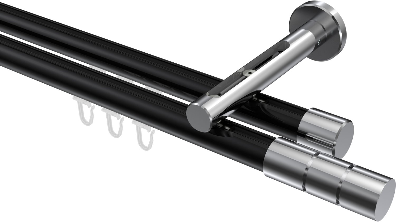 Gardinenstangen mit Innenlauf aus Aluminium / Metall in 20 mm Ø, 2-läufig, Modell SITENO - Elanto Schwarz / Chrom