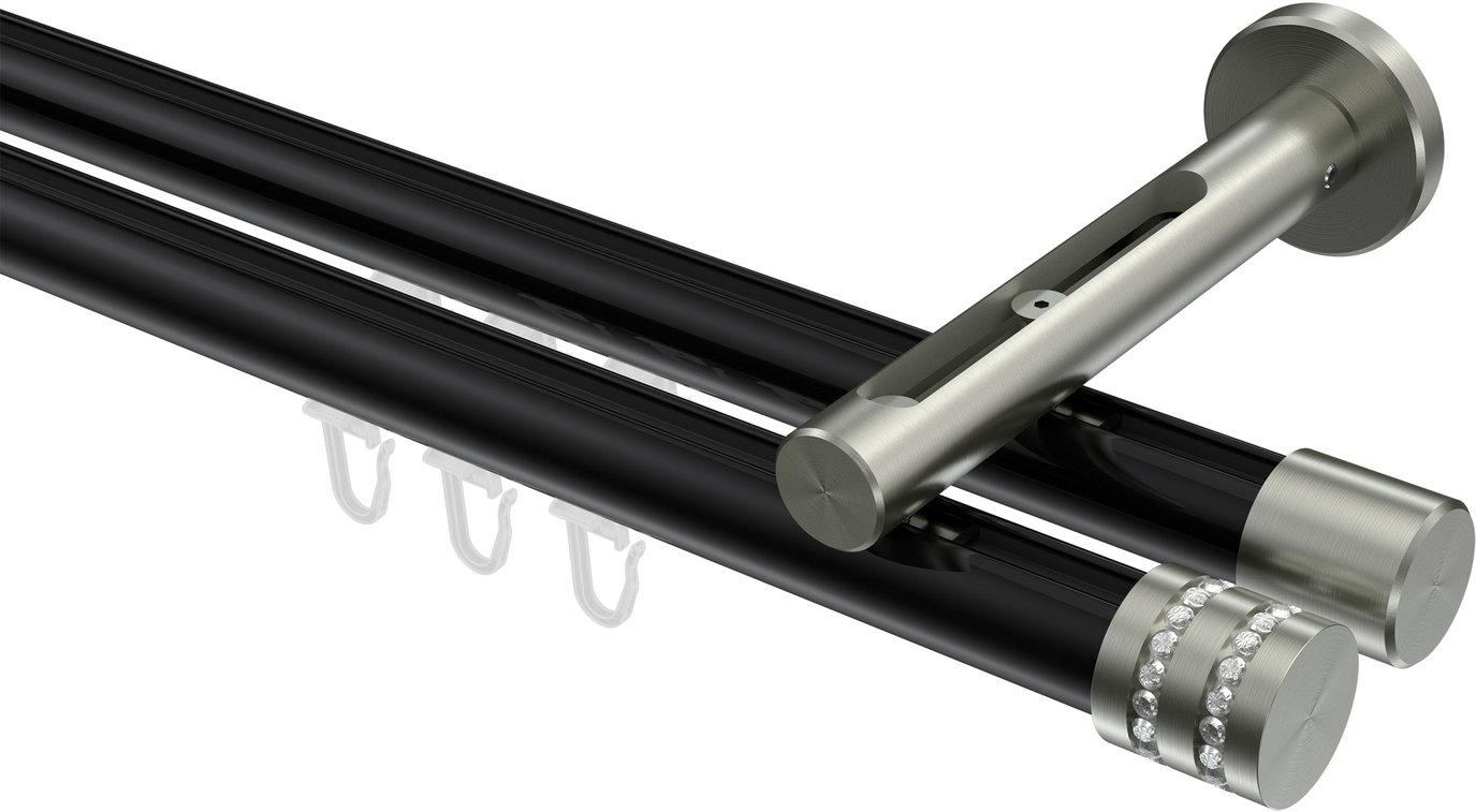 Gardinenstangen mit Innenlauf aus Aluminium / Metall in 20 mm Ø, 2-läufig, Modell SITENO - Estana Schwarz / Edelstahl-Optik