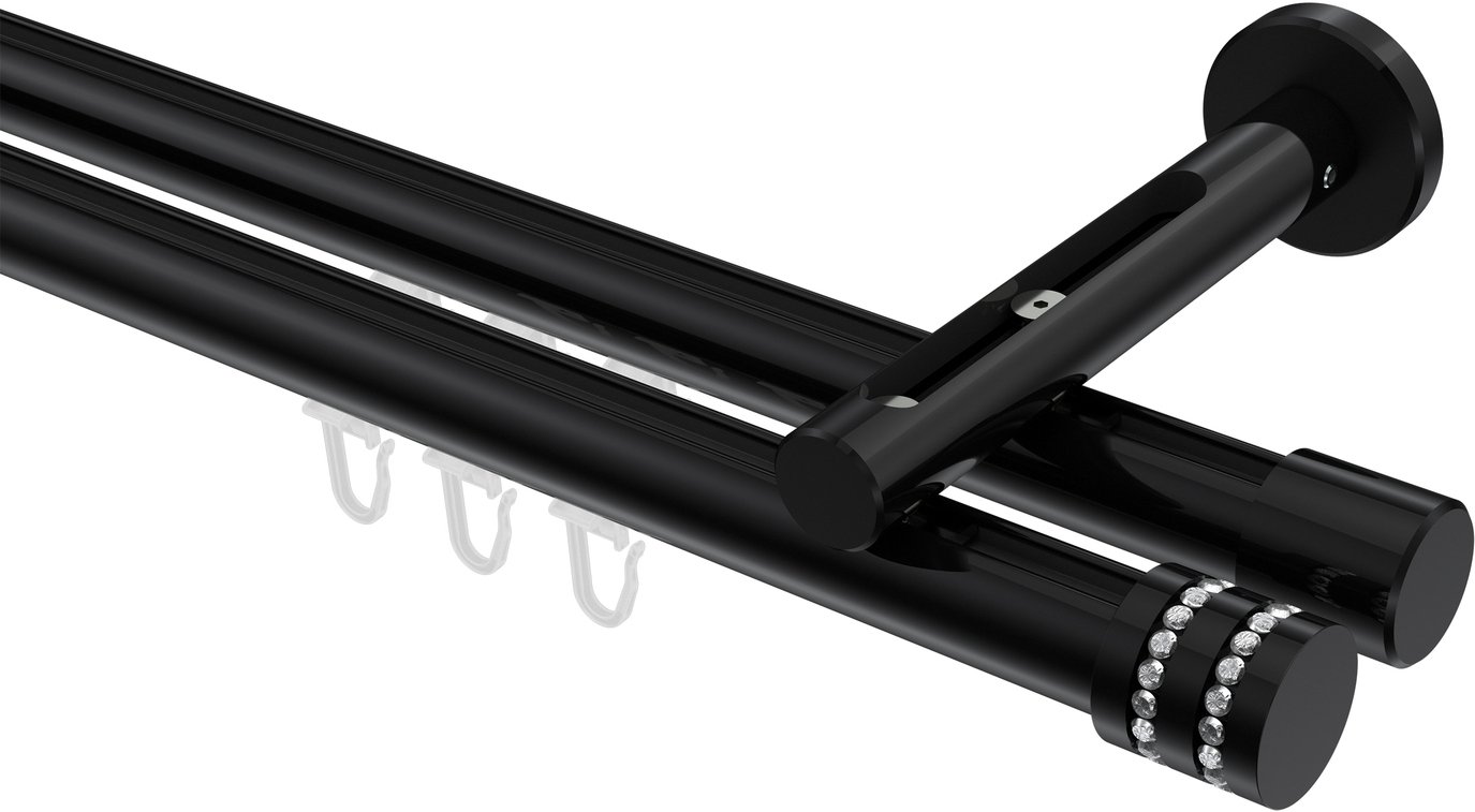 Gardinenstangen mit Innenlauf aus Aluminium / Metall in 20 mm Ø, 2-läufig, Modell SITENO - Estana Schwarz