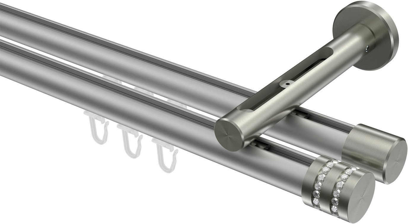 Gardinenstangen mit Innenlauf aus Aluminium / Metall in 20 mm Ø, 2-läufig, Modell SITENO - Estana Silbergrau / Edelstahl-Optik