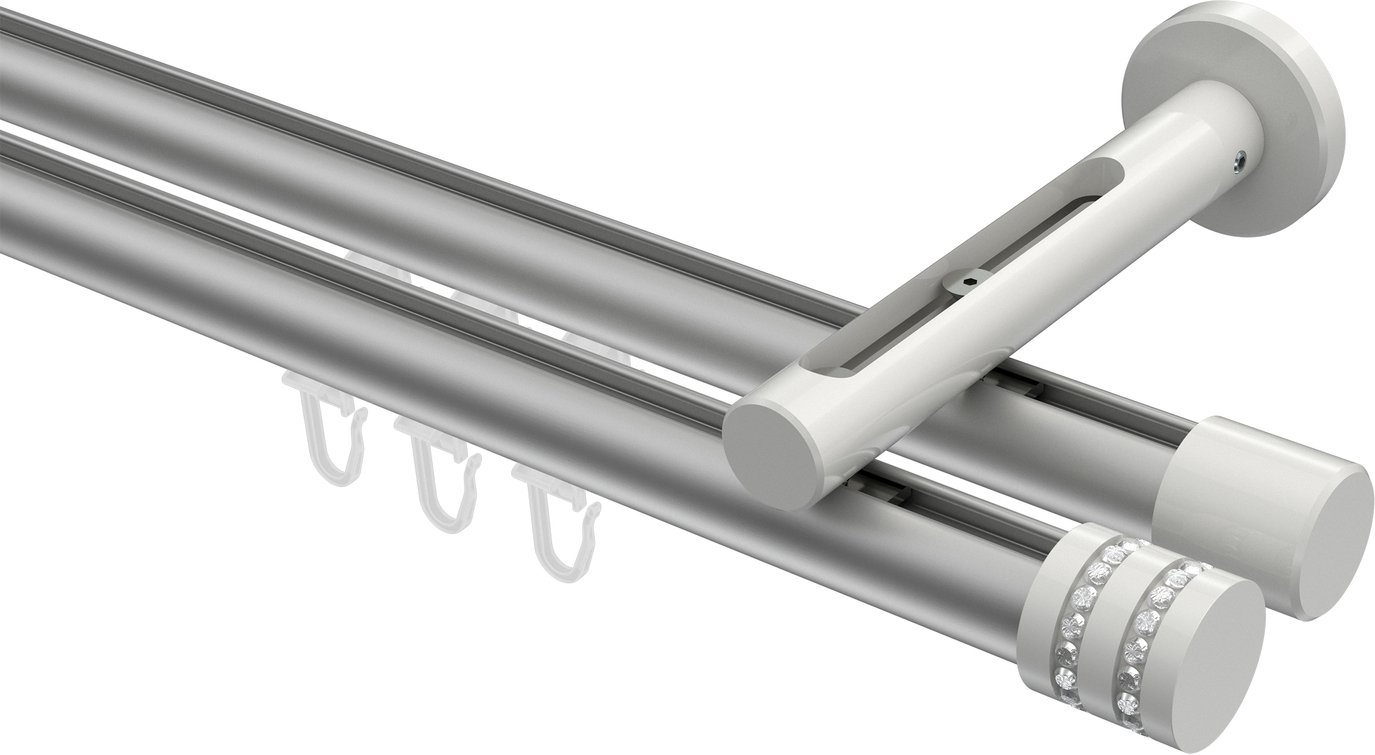 Gardinenstangen mit Innenlauf aus Aluminium / Metall in 20 mm Ø, 2-läufig, Modell SITENO - Estana Silbergrau / Weiß