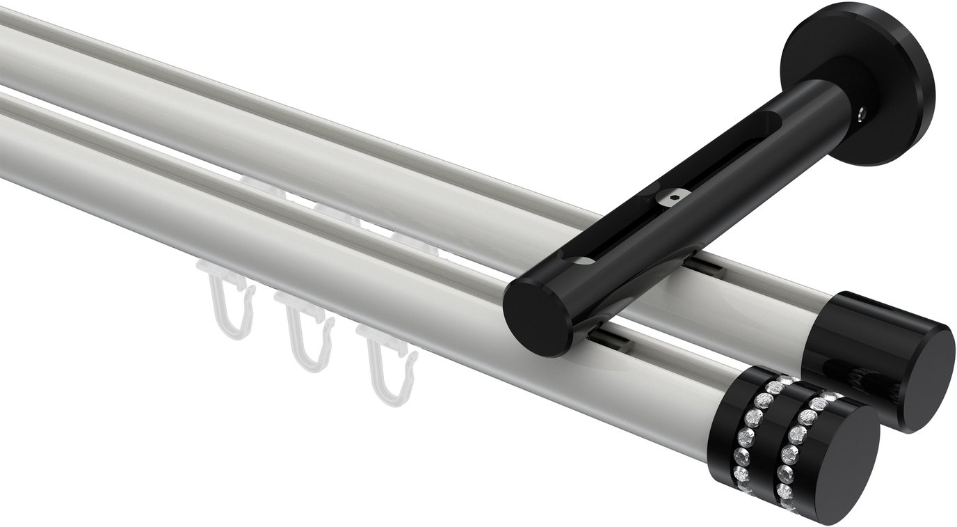 Gardinenstangen mit Innenlauf aus Aluminium / Metall in 20 mm Ø, 2-läufig, Modell SITENO - Estana Weiß / Schwarz