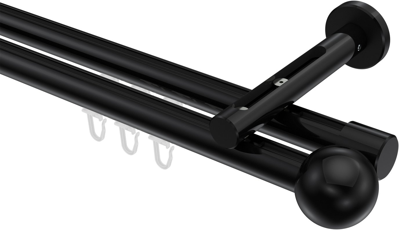 Gardinenstangen mit Innenlauf aus Aluminium / Metall in 20 mm Ø, 2-läufig, Modell SITENO - Luino Schwarz