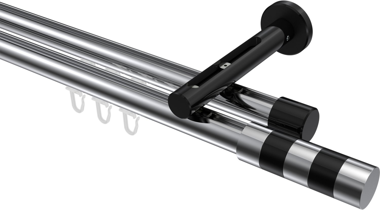 Gardinenstangen mit Innenlauf aus Aluminium / Metall in 20 mm Ø, 2-läufig, Modell SITENO - Mavell Chrom / Schwarz