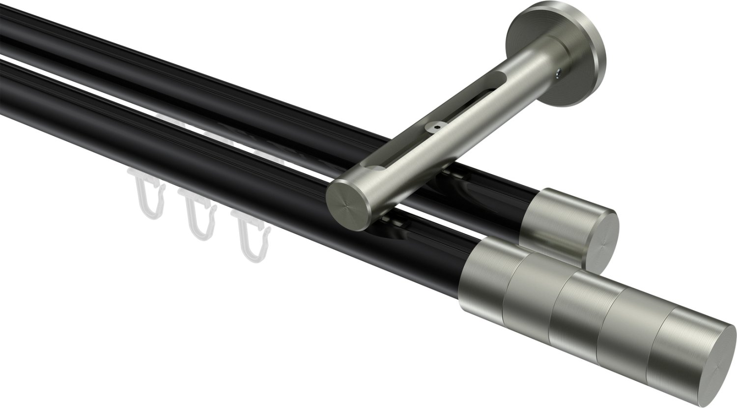 Gardinenstangen mit Innenlauf aus Aluminium / Metall in 20 mm Ø, 2-läufig, Modell SITENO - Mavell Schwarz / Edelstahl-Optik