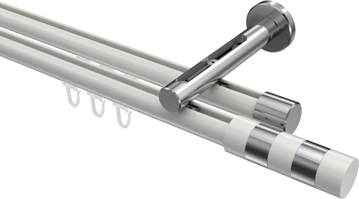 Gardinenstangen mit Innenlauf aus Aluminium / Metall in 20 mm Ø, 2-läufig, Modell SITENO - Mavell Weiß / Chrom