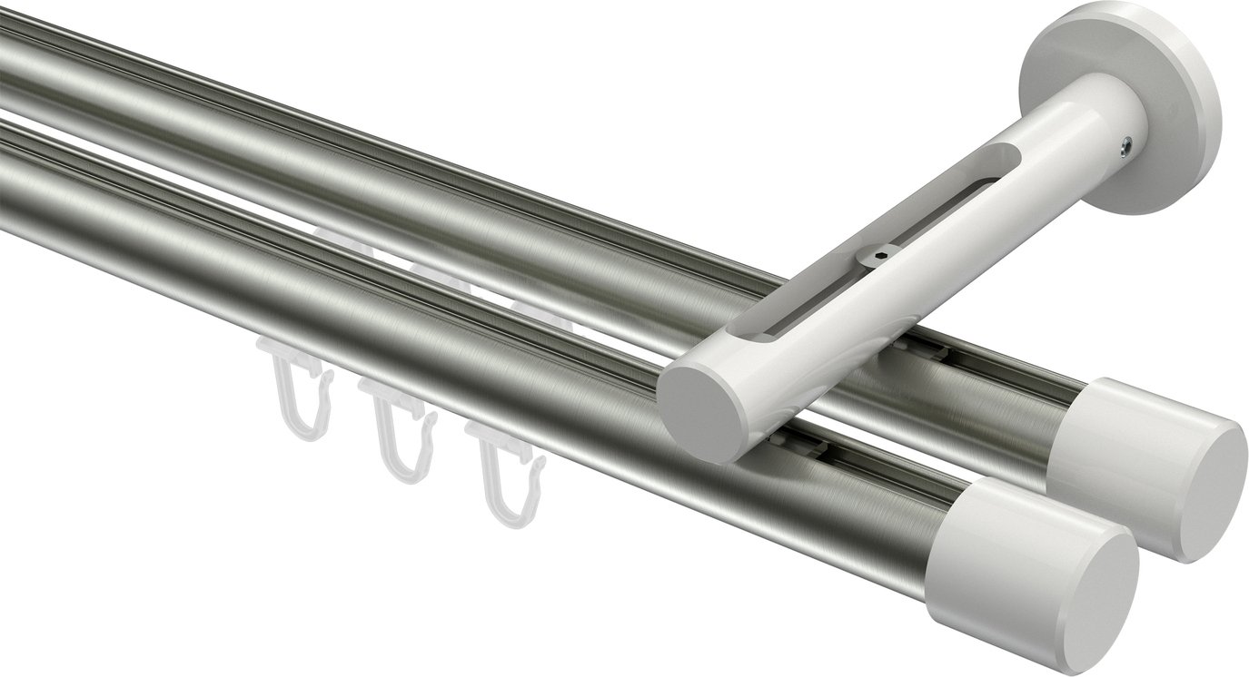 Gardinenstangen mit Innenlauf aus Aluminium / Metall in 20 mm Ø, 2-läufig, Modell SITENO - Santo Edelstahl-Optik / Weiß