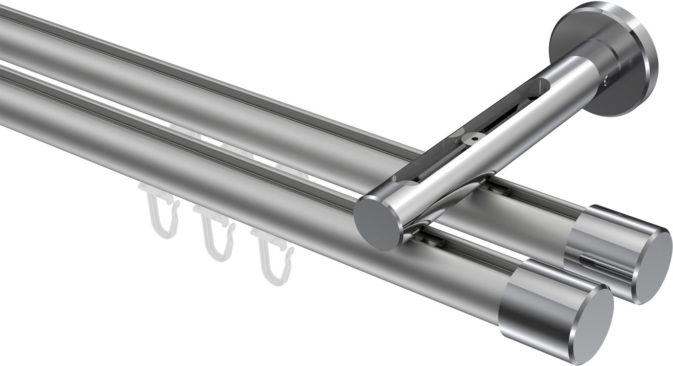Gardinenstangen mit Innenlauf aus Aluminium / Metall in 20 mm Ø, 2-läufig, Modell SITENO - Santo Silbergrau / Chrom
