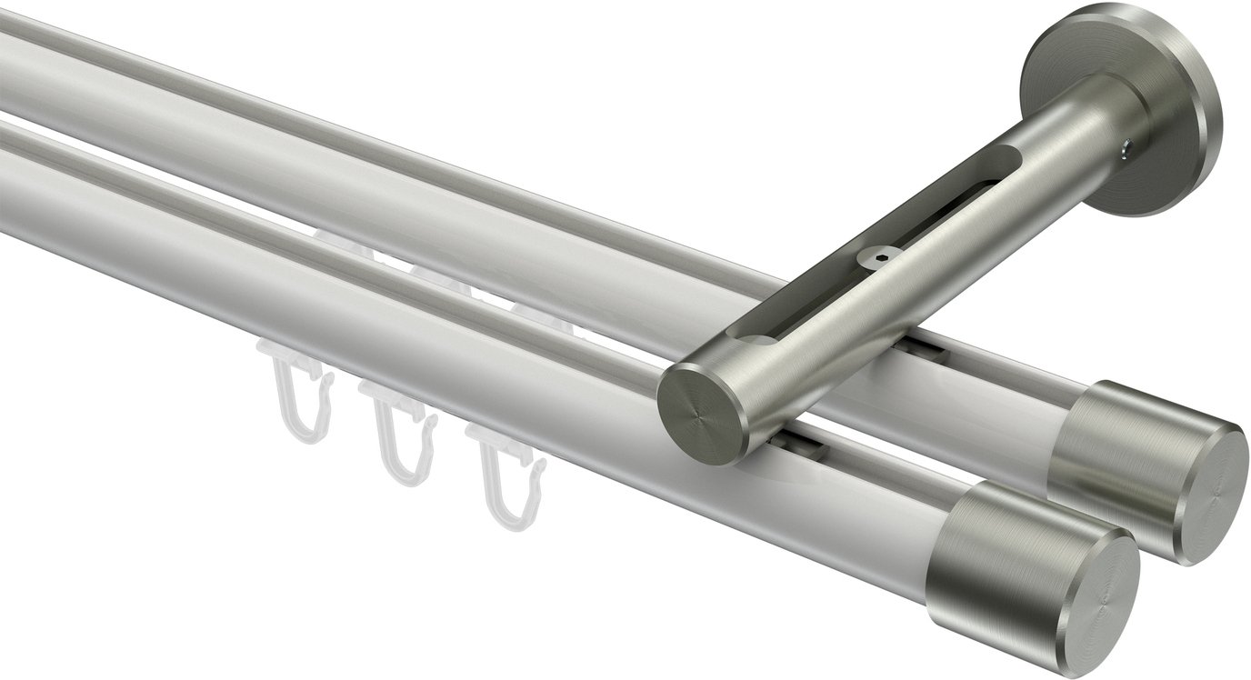 Gardinenstangen mit Innenlauf aus Aluminium / Metall in 20 mm Ø, 2-läufig, Modell SITENO - Santo Weiß / Edelstahl-Optik