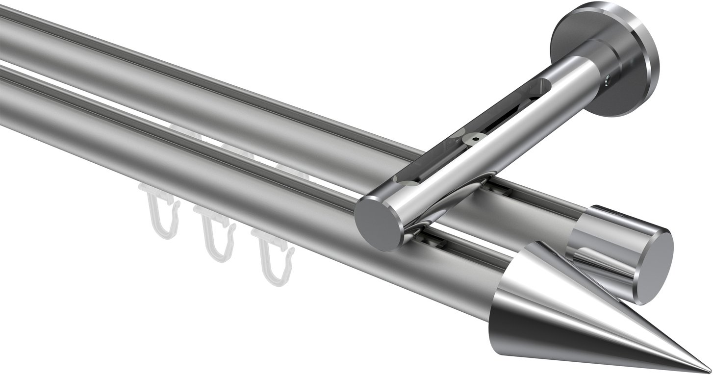 Gardinenstangen mit Innenlauf aus Aluminium / Metall in 20 mm Ø, 2-läufig, Modell SITENO - Savio Silbergrau / Chrom