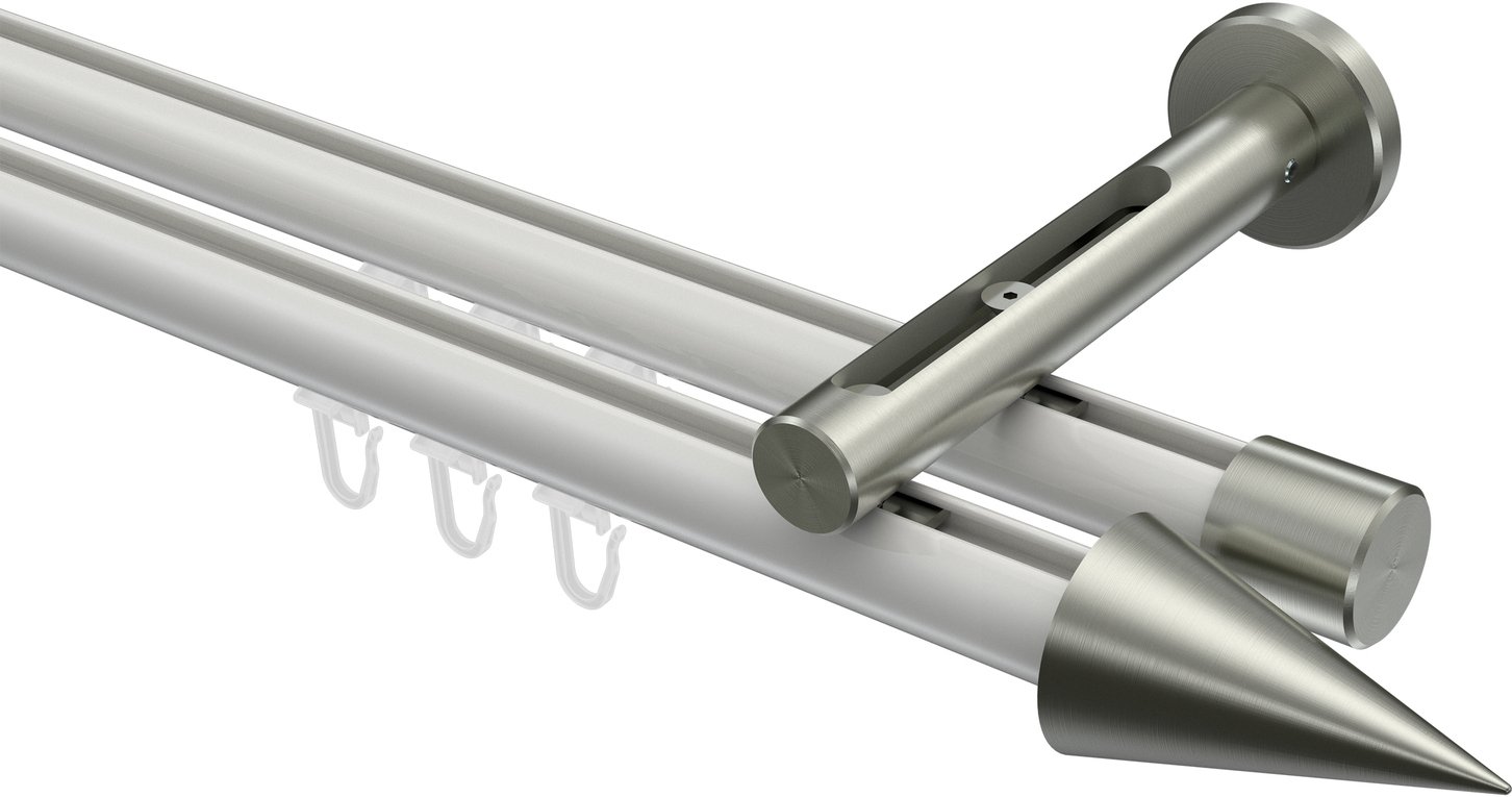 Informationen zu Innenlauf Gardinenstange Aluminium / Metall 20 mm Ø 2-läufig SITENO - Savio Weiß / Edelstahl-Optik: