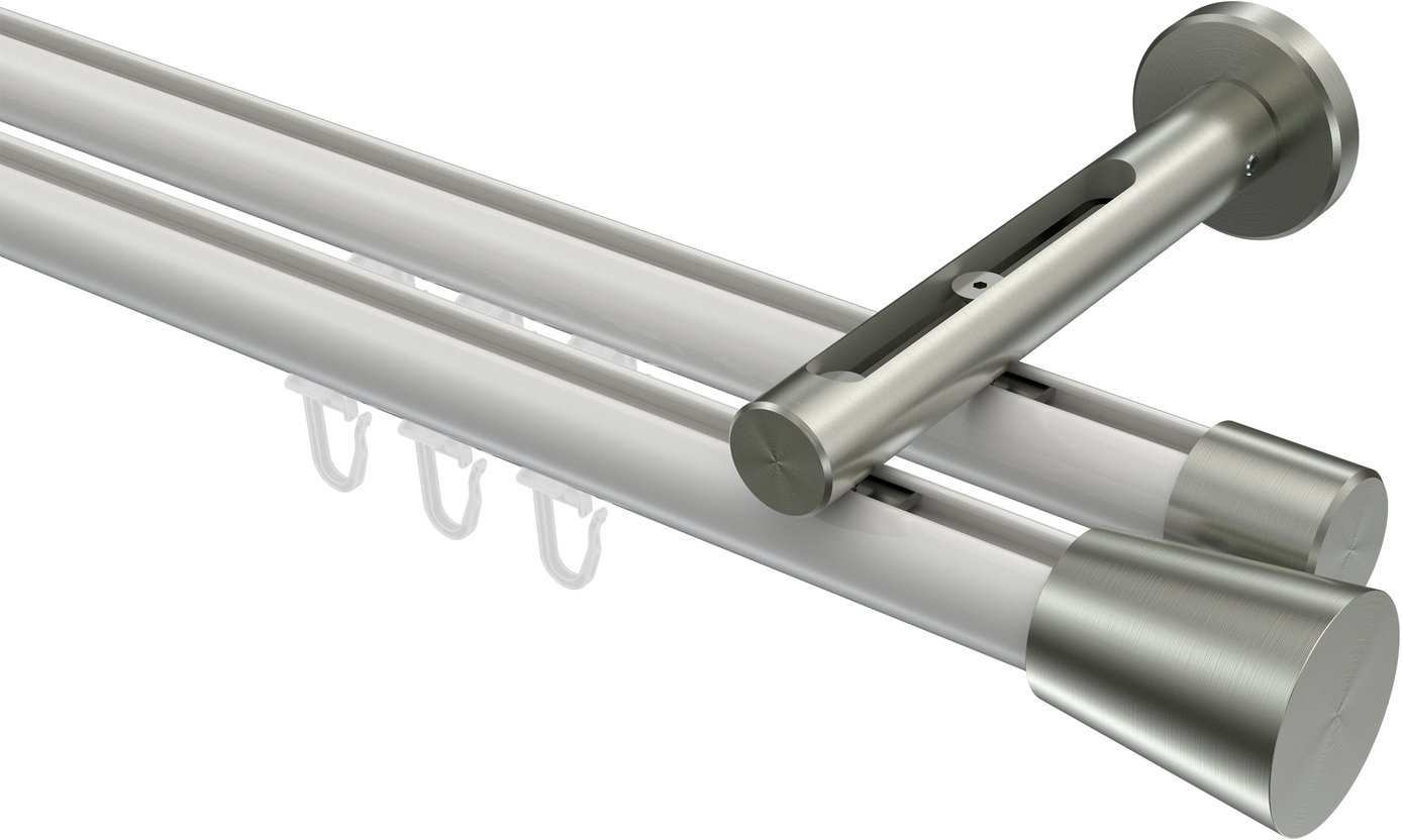 Informationen zu Innenlauf Gardinenstange Aluminium / Metall 20 mm Ø 2-läufig SITENO - Sitra Weiß / Edelstahl-Optik: