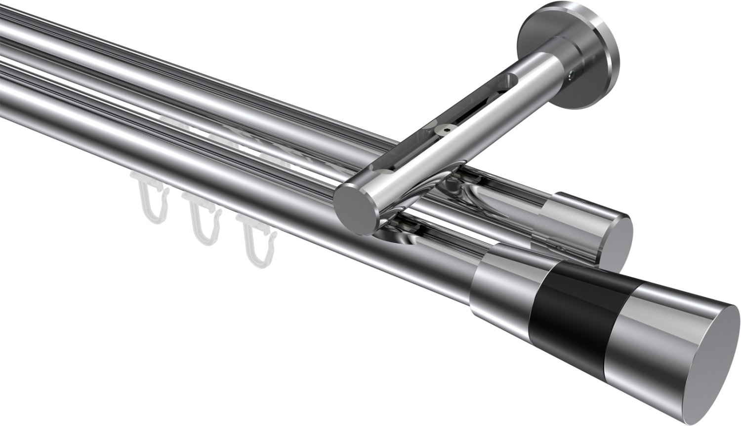 Gardinenstangen mit Innenlauf aus Aluminium / Metall in 20 mm Ø, 2-läufig, Modell SITENO - Tanara Chrom