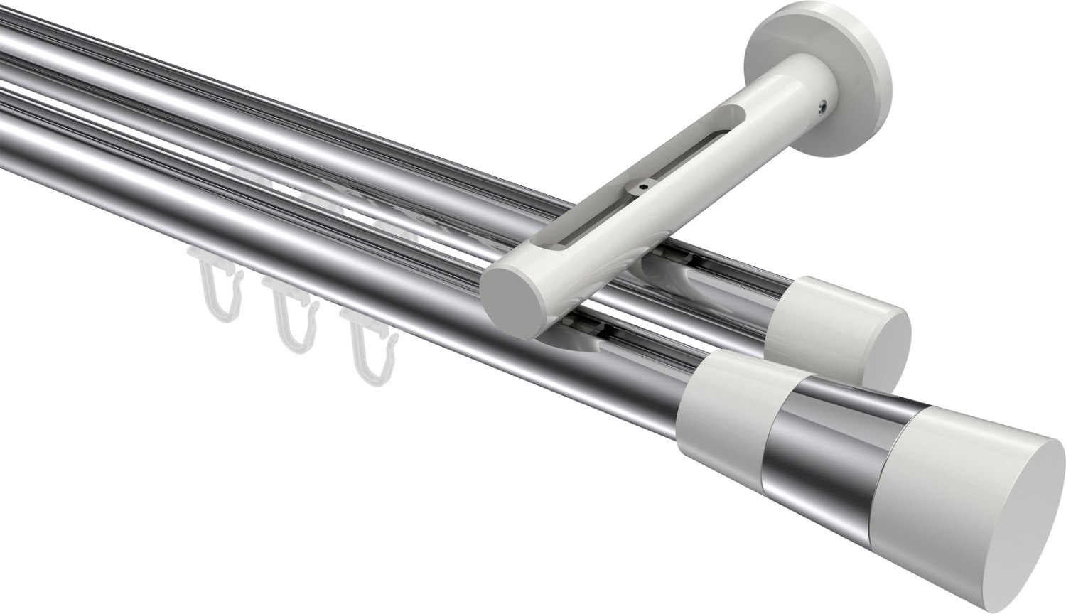 Gardinenstangen mit Innenlauf aus Aluminium / Metall in 20 mm Ø, 2-läufig, Modell SITENO - Tanara Chrom / Weiß