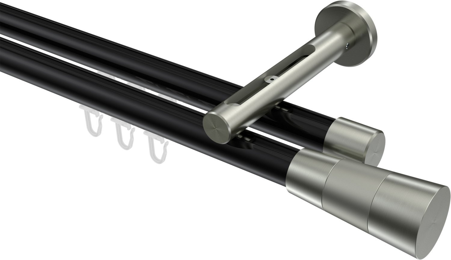 Gardinenstangen mit Innenlauf aus Aluminium / Metall in 20 mm Ø, 2-läufig, Modell SITENO - Tanara Schwarz / Edelstahl-Optik