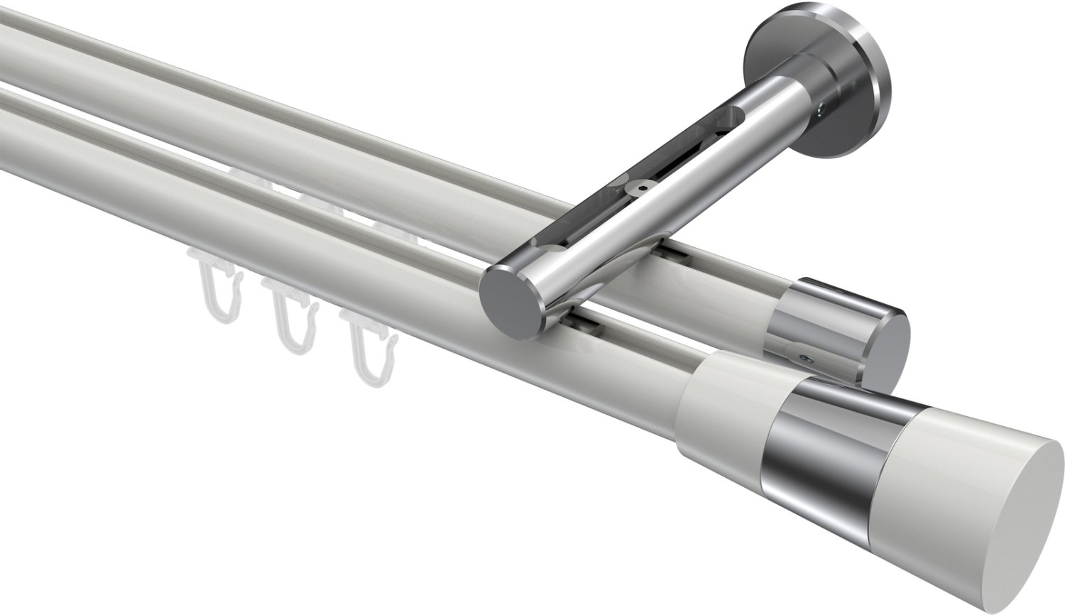 Gardinenstangen mit Innenlauf aus Aluminium / Metall in 20 mm Ø, 2-läufig, Modell SITENO - Tanara Weiß / Chrom