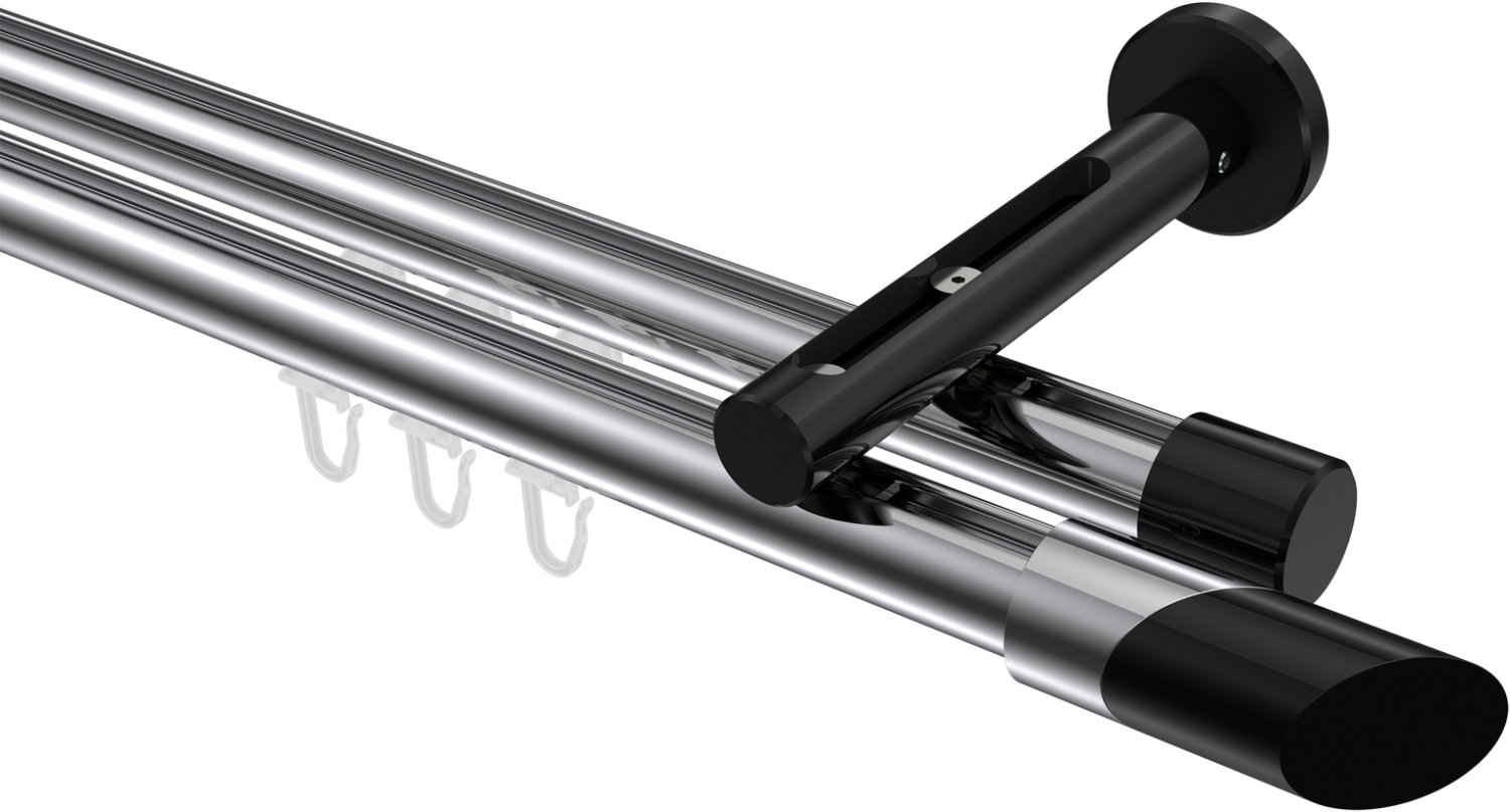 Gardinenstangen mit Innenlauf aus Aluminium / Metall in 20 mm Ø, 2-läufig, Modell SITENO - Verano Chrom / Schwarz