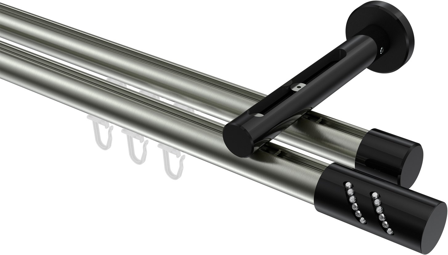 Gardinenstangen mit Innenlauf aus Aluminium / Metall in 20 mm Ø, 2-läufig, Modell SITENO - Zoena Edelstahl-Optik / Schwarz
