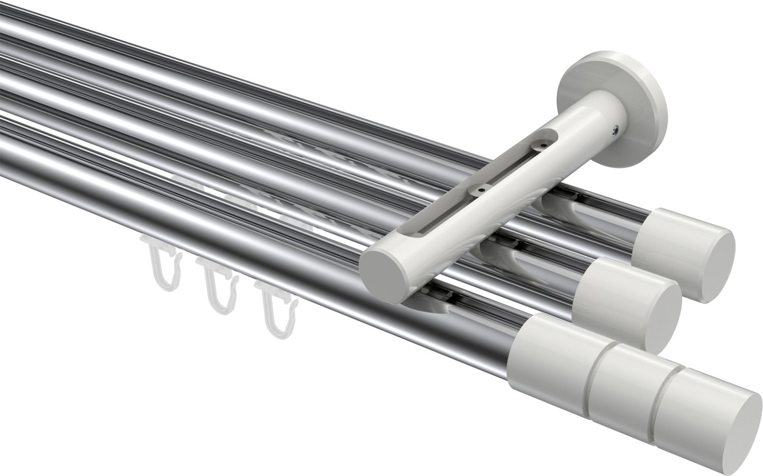 Gardinenstangen mit Innenlauf aus Aluminium / Metall in 20 mm Ø, 3-läufig, Modell SITENO - Elanto Chrom / Weiß