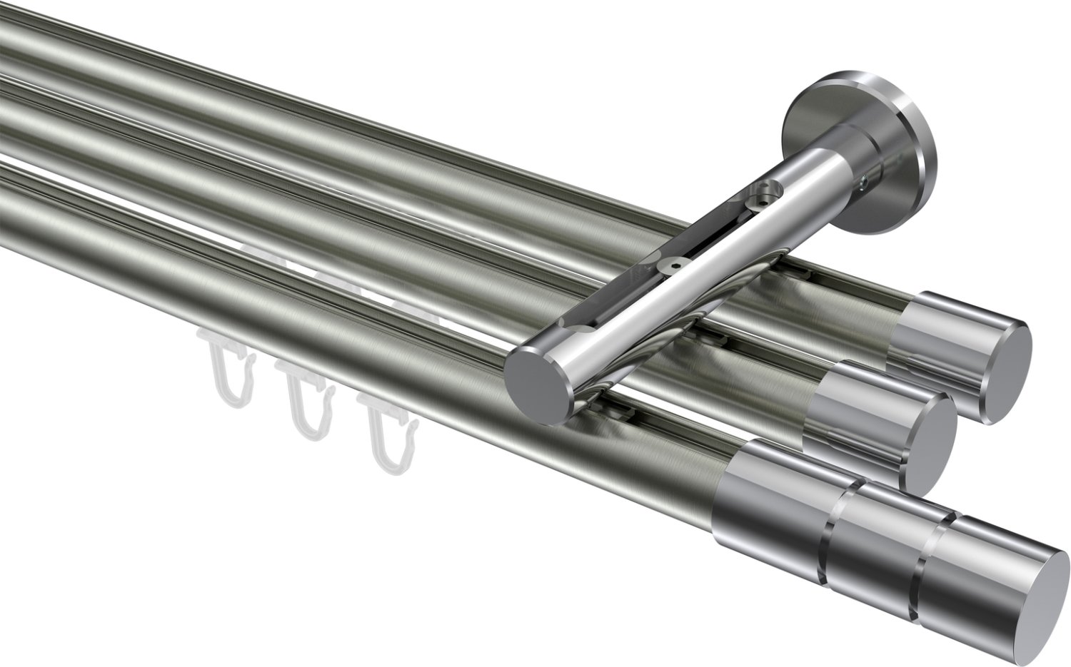 Gardinenstangen mit Innenlauf aus Aluminium / Metall in 20 mm Ø, 3-läufig, Modell SITENO - Elanto Edelstahl-Optik / Chrom