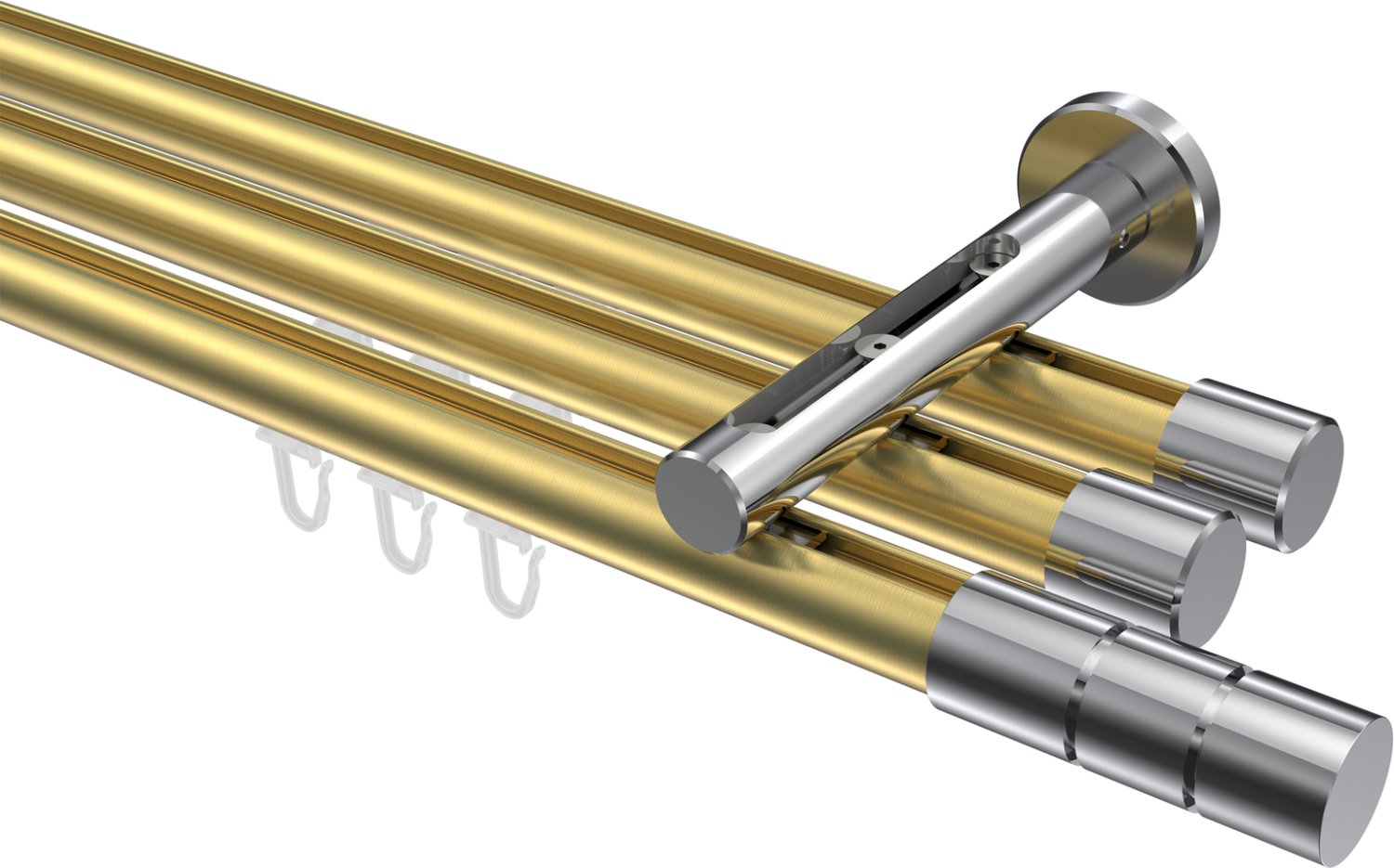 Gardinenstangen mit Innenlauf aus Aluminium / Metall in 20 mm Ø, 3-läufig, Modell SITENO - Elanto Messing-Optik / Chrom