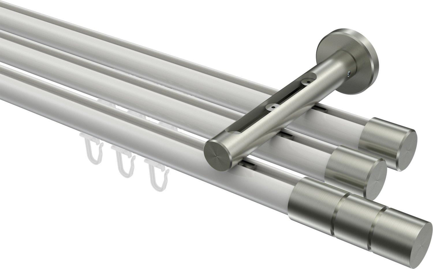 Gardinenstangen mit Innenlauf aus Aluminium / Metall in 20 mm Ø, 3-läufig, Modell SITENO - Elanto Weiß / Edelstahl-Optik